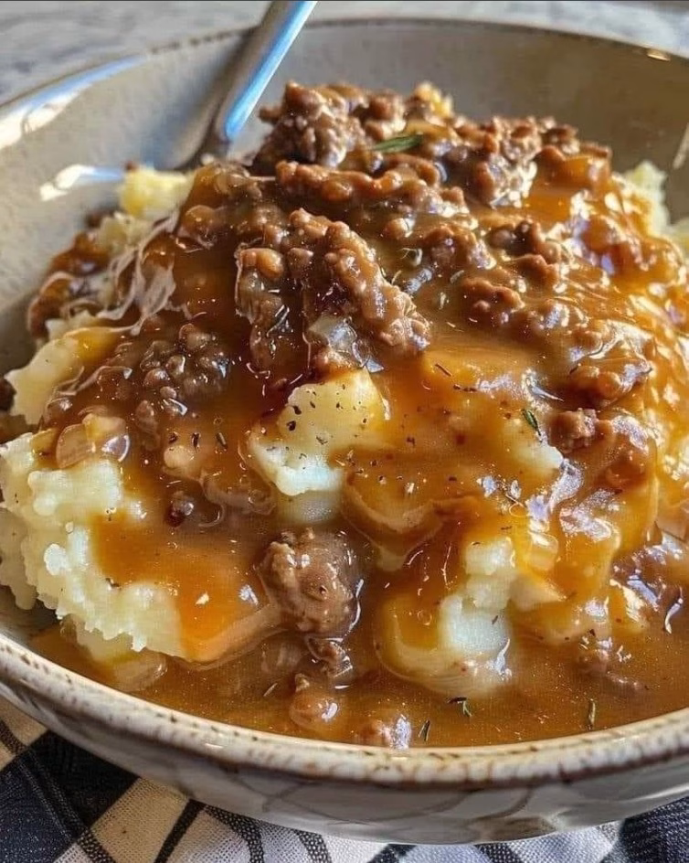 Savory Ground Beef Gravy Over Creamy Mashed Potatoes A Comfort Food Classic